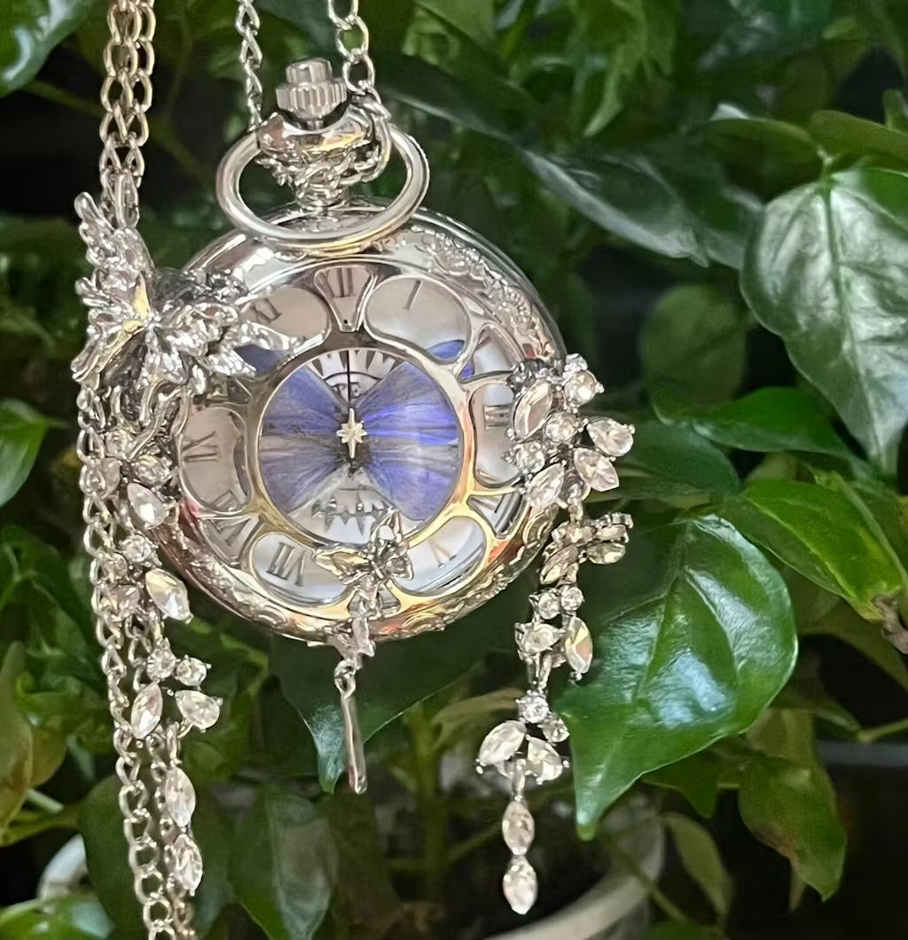 Each butterfly pocket watch is assembled by hand in small batches, not produced on factory lines. The materials are chosen for weight, detail, and longevity, so it feels substantial the moment you hold it.
